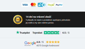 Doručení zajišťuje Česká pošta nebo Balíkovna. Budete informováni prostřednictvím SMS a telefonicky před doručením. Platbu můžete provést v hotovosti nebo kartou, pokud jste již produkt zaplatili, není potřeba platit znovu. Ve své poštovní schránce najdete oznámení o zásilce. Pokud produkt nesplní vaše očekávání, můžete jej vrátit bez udání důvodu do 14 dnů od doručení. Vrácený produkt musí být nepoškozený a v původním obalu. Přiložte vyplněný formulář pro reklamaci/vrácení a my vám vrátíme peníze nebo vyměníme produkt za vhodnější produkt stejné hodnoty bez dalších poplatků. Tímto způsobem zajišťujeme spokojenost našich stálých zákazníků.