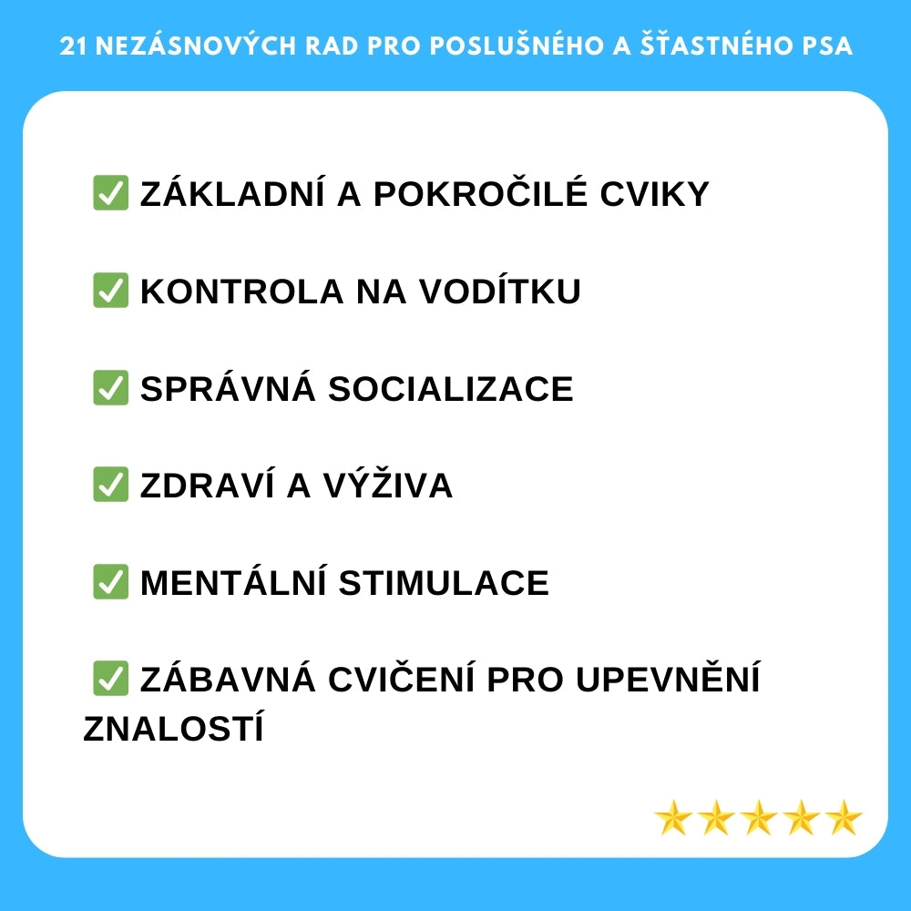 Má váš pejsek problém poslouchat povely tak, jak byste si přáli? Máme pro vás řešení! Naše kniha vám ukáže, jak pomocí pozitivní motivace rychle zlepšit poslušnost psa – a to za pouhých 21 dní!